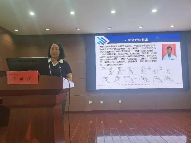 许世闻主任的授课题目是:浅谈筋针疗法,许主任全面讲解了筋针疗法的核心概念、临床价值、操作规范、安全要点及临床应用等内容,让学员们对筋针疗法有了清晰认识。她特别指出筋针疗法具有取穴简便、无痛进针、见效迅速等显著特点,值得在针灸临床工作中积极推广和应用。