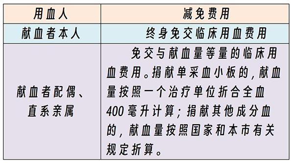 献血者及其配偶、直系亲属临床用血时,按照下列规定享受免费用血优惠: