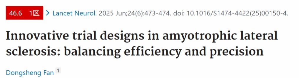 近日,北京大学第三医院神经内科樊东升教授在国际神经病学领域权威杂志《柳叶刀·神经病学》(The Lancet Neurology)上受邀发表题为《ALS的创新试验设计:保持效率和精度的平衡》(Innovative trial designs in amyotrophic lateral sclerosis: balancing efficiency and precision)的述评,分享了关于肌萎缩侧索硬化症(渐冻症,ALS)临床试验设计的最新观点。