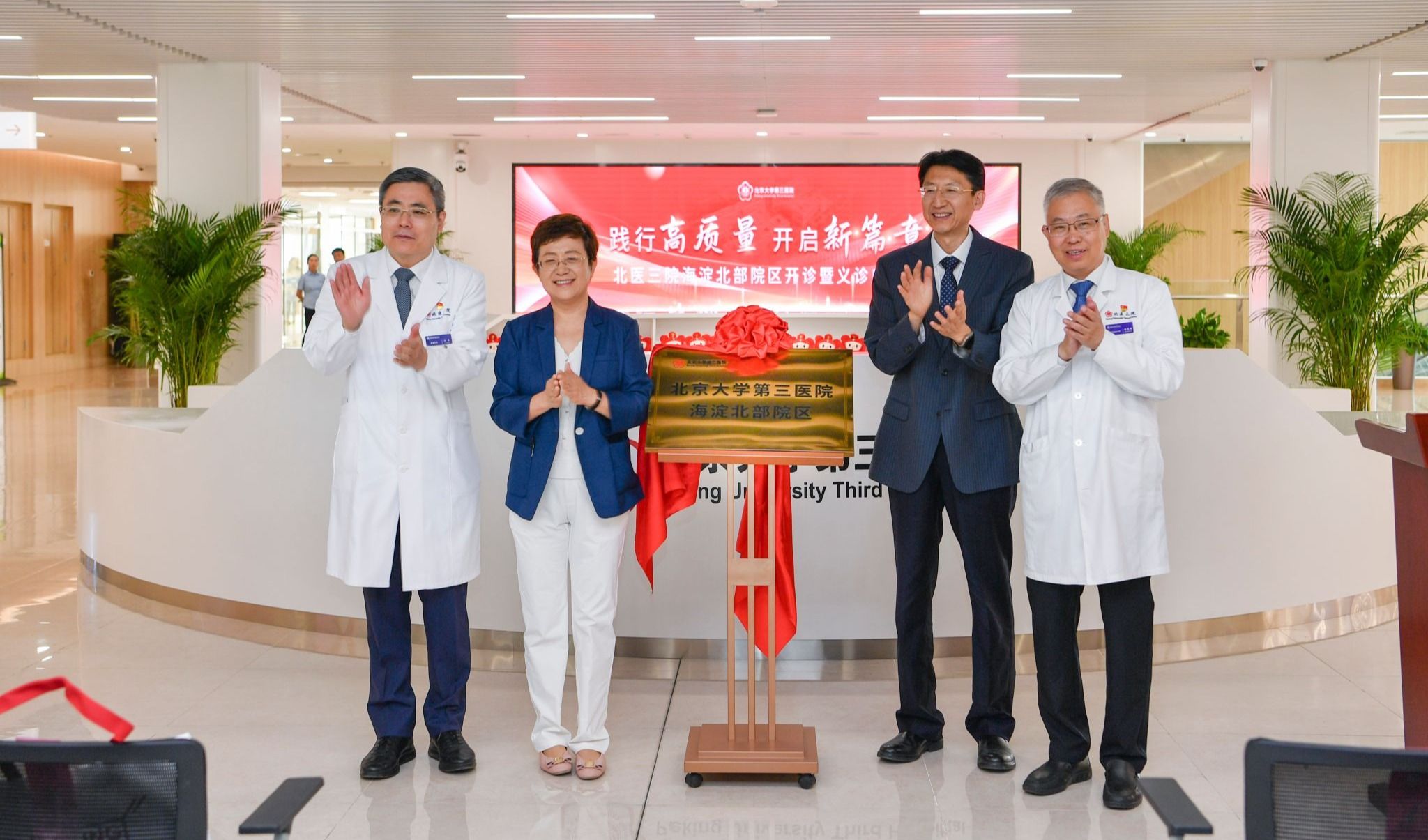 随后,在大家期待的目光和热烈的掌声中,北京大学第三医院海淀北部院区正式揭牌。