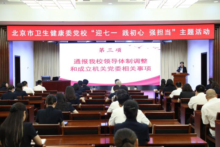 为热烈庆祝中国共产党成立104周年,引导党员干部坚定理想信念,践行初心使命,把对党的无限忠诚与热爱不断转化为推动党校各项工作再上新台阶的强大动力,6月30日,北京市卫生健康委党校组织开展了“迎七一 践初心 强担当”主题活动。分管日常工作的副校长朱绍茹同志出席活动并讲话,校委会成员、全体教职工参加活动。主题活动由办公室(党办)副主任(主持工作)许馨元同志主持。