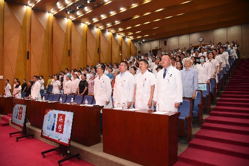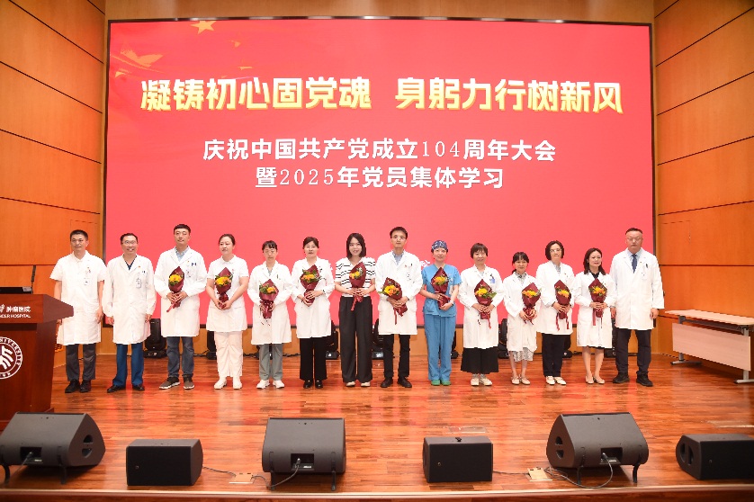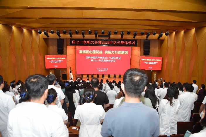 6月25日下午,北京大学肿瘤医院“凝铸初心固党魂 身躬力行树新风”庆祝中国共产党成立104周年大会暨2025年党员集体学习在学术报告厅召开。医院党政领导班子成员、两委委员、全体党员、入党积极分子培训班学员以及民主党派代表等500余人参加会议。除学术报告厅主会场外,会议同时设有5个分会场进行全程直播。医院党委副书记仲西瑶主持会议。