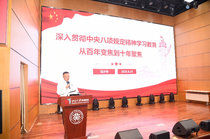 白衣担重任,无悔践初心。最后马少华书记激励全体党员同志,在当前世界未有之大变局下,要学习好运用好深入贯彻中央八项规定精神的成效和经验,以优良作风凝心聚力、干事创业,无愧于一袭白衣,无愧于北京大学、北京大学医学部和北京大学肿瘤医院这三块闪亮的牌子,为推动医院高质量发展提供有力保障。