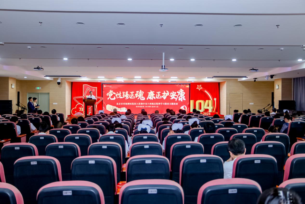 6月26日下午13:30,北京市垂杨柳医院举办“党性铸医魂,廉医护安康”主题活动暨庆祝建党104周年表彰大会。朝阳区委卫生健康工委书记、区卫生健康委主任时春岗,医院全体院领导、党(总)支部书记委员、党员代表、团员代表等参加大会。