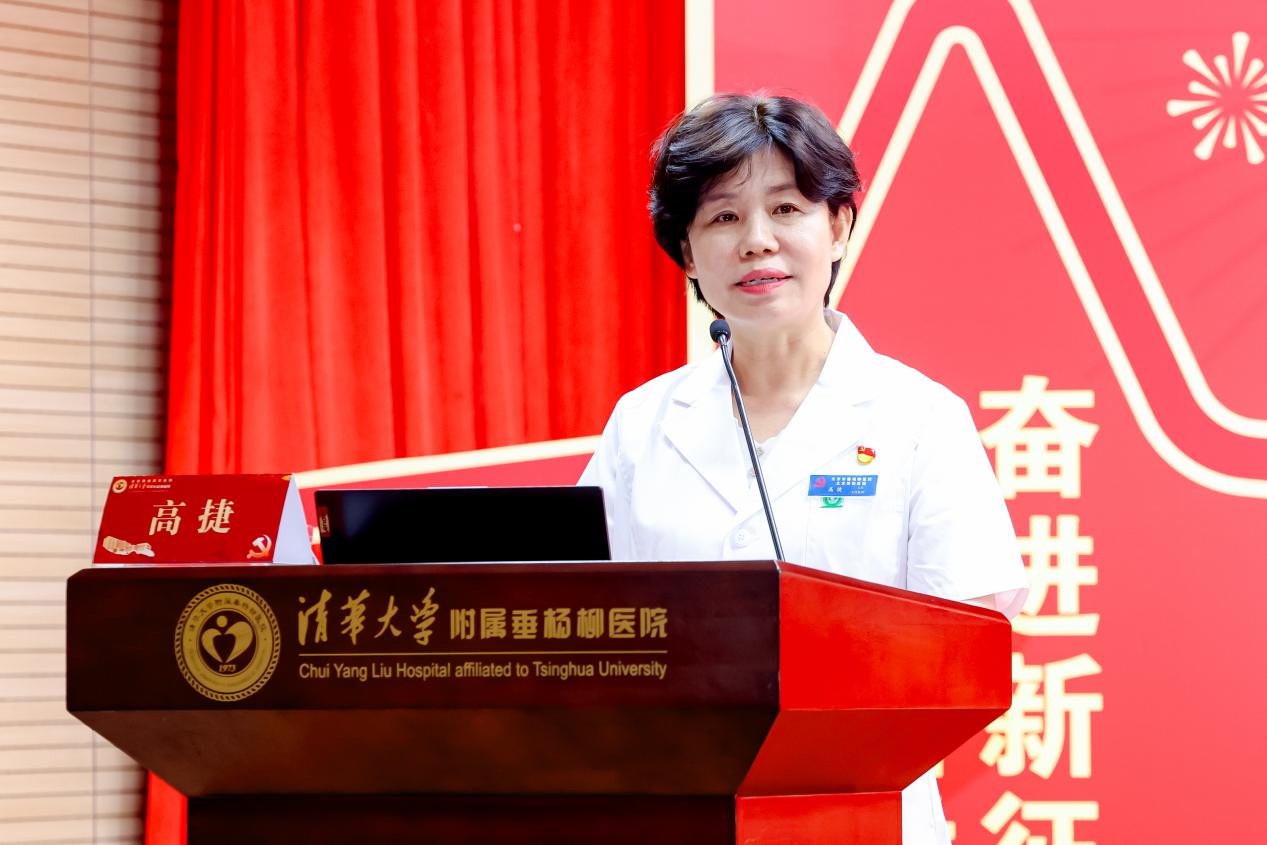 聆听奋斗故事,汇聚发展动能。活动现场,优秀党员代表王翠、优秀党务工作者代表高捷分别宣讲,分享他们在医疗工作和党务工作中的奋斗故事。王翠以“坚守临床一线,守护患者健康”为主题,讲述了自己在平凡岗位上接受党性教育,用心服务患者、用爱诠释担当的经历;第十一党支部书记高捷从党支部建设出发,分享了如何通过党建凝聚团队力量,推动科室发展和塑造支部文化的经验。