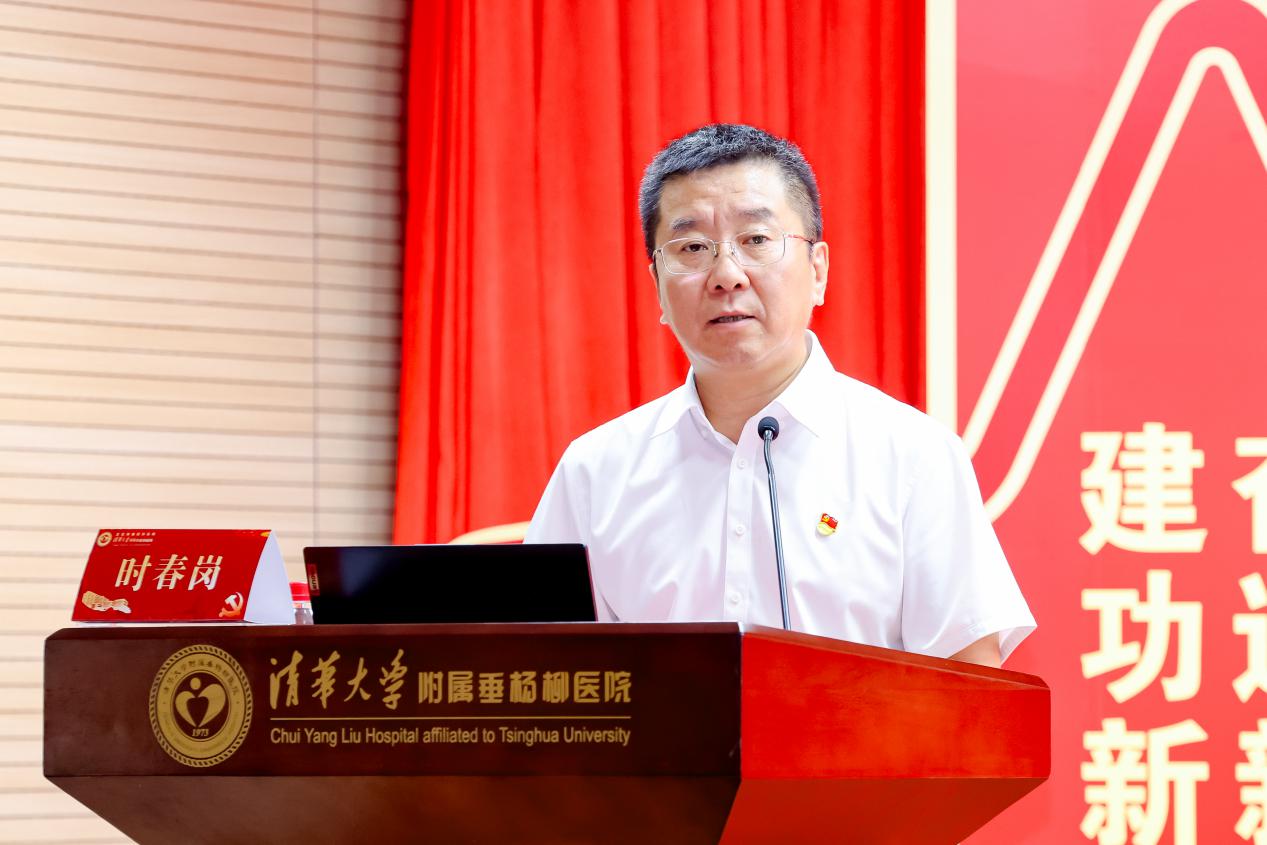 随后,时春岗发表讲话,他对医院党建工作和发展成果给予高度评价。他指出,垂杨柳医院始终坚持以人民健康为中心,将党建工作与医疗服务深度融合,取得了一定的成绩。他希望医院以此次活动为契机,不断加强党的建设,提升医疗服务质量,为朝阳区卫生健康事业发展作出更大贡献。