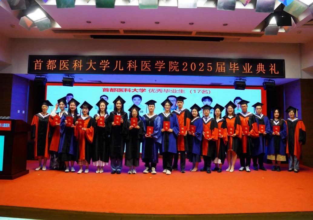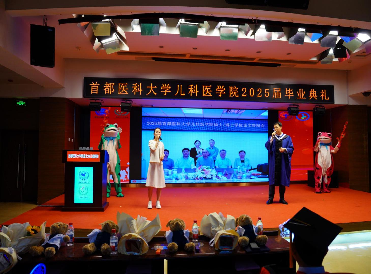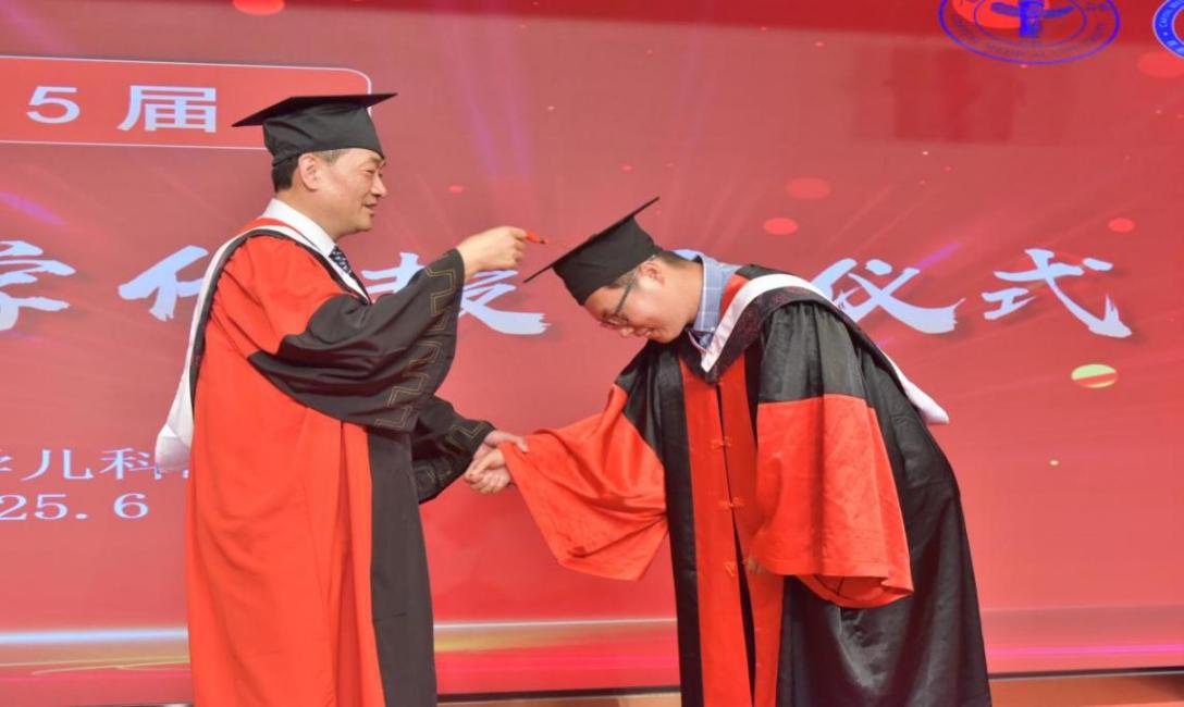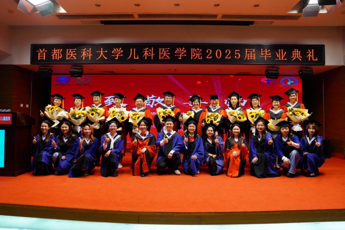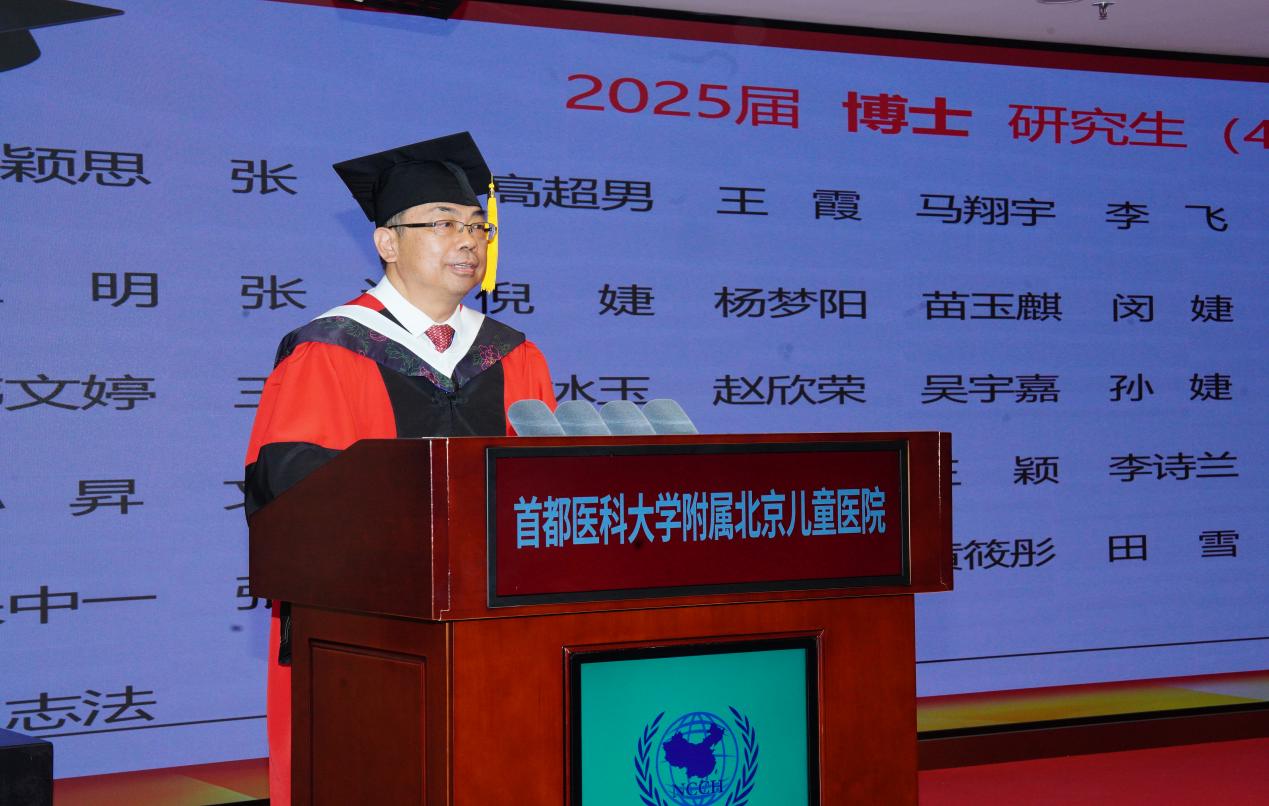2025年6月25日下午,首都医科大学儿科医学院2025届毕业典礼于北京儿童医院门诊楼12层报告厅盛大举行。国家儿童医学中心主任、首都医科大学附属北京儿童医院党委副书记、院长、首都医科大学儿科医学院院长、儿科学院院长、儿科医学院学位委员会主席倪鑫,首都医科大学附属北京儿童医院党委书记、儿科医学院学位委员会副主席张国君,首都医科大学附属北京儿童医院副院长王爱华,首都医科大学附属北京儿童医院副院长、儿科学院副院长赵成松,原党委书记王天有,儿科医学院学位委员会副主席李巍,党委委员、儿内科基地负责人、重症医学科首席专家钱素云,教育处处长焦莉平、内科教研室主任郭琰、儿外科教研室副主任李樱子等领导及嘉宾莅临典礼。研究生导师、临床教师代表、学生家长及在读学生代表等200余人共同见证了这一庄严时刻。