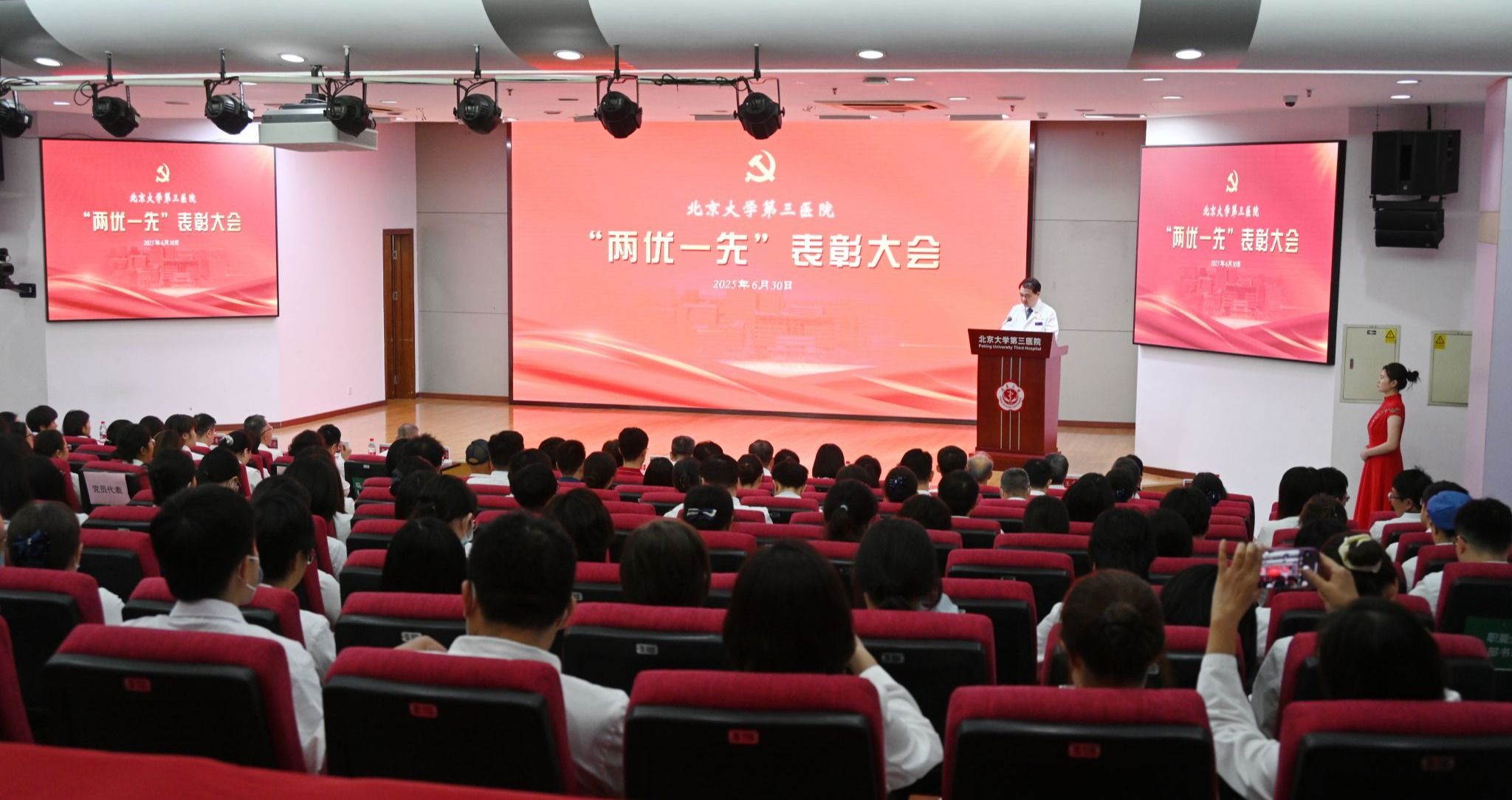 2025年是中国共产党成立104周年,在全党开展深入贯彻中央八项规定精神学习教育之际,为表彰先进、交流经验,6月30日下午,北京大学第三医院在科学报告厅举行“两优一先”表彰大会。