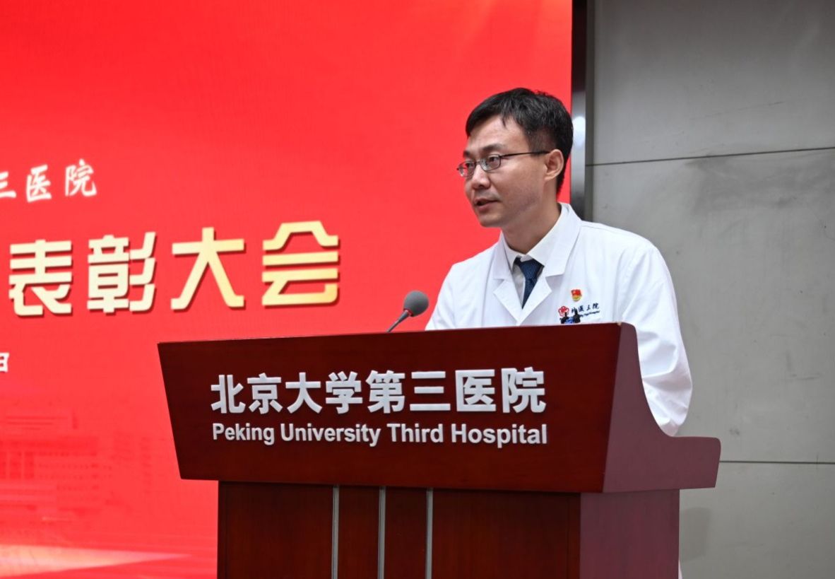 表彰仪式结束后,受学校和医院表彰的先进代表上台发言,讲述了北京大学第三医院人服务国家战略和守护人民健康的生动实践。