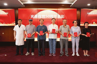 五十年风雨兼程,半世纪初心如磐。医院党委书记、理事长纪智礼为老党员代表颁发“光荣在党50年”纪念勋章,6名青年管理骨干代表向老党员们敬献鲜花。医院原工会副主席孟素平作为老党员代表深情发言,以真挚的话语表达了对党的忠诚与热爱,以及对医院未来发展的期待。