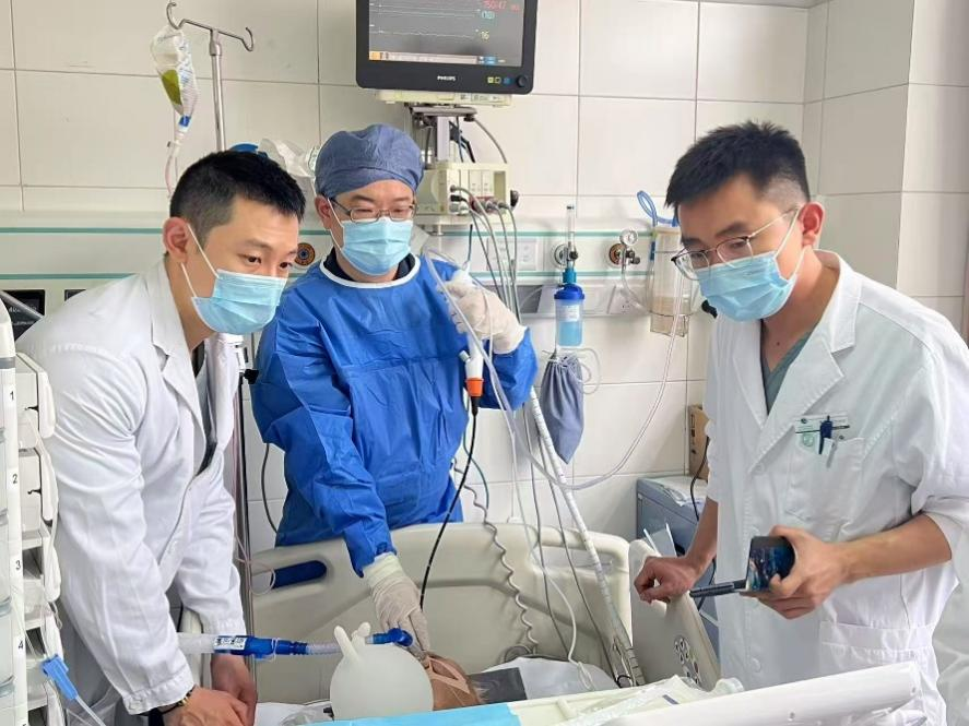 在北京中医医院副院长、急诊危重症中心主任郭伟带领的重症监护室(ICU)团队的主导协作下,联合CCU医护人员,共同实施了支气管镜下肺泡灌洗治疗,帮助荣爷爷进一步清理下呼吸道的分泌物、痰栓等阻塞物,改善通气功能。