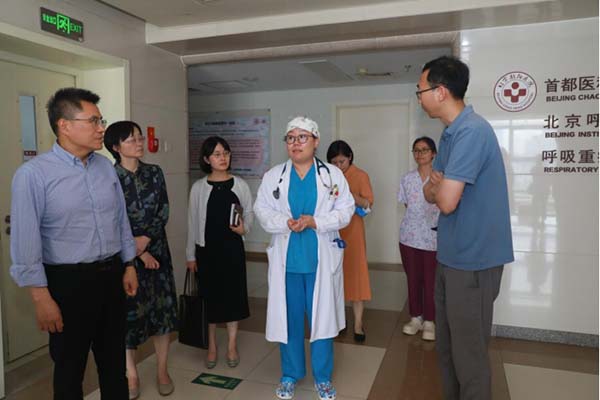 调研人员一行实地走访了朝阳医院发热门诊、职业病与中毒医学科毒化实验室、RICU等相关区域,梅雪随行介绍相关工作开展情况。随后,双方围绕突发公共卫生事件应对体系建设进行交流座谈。