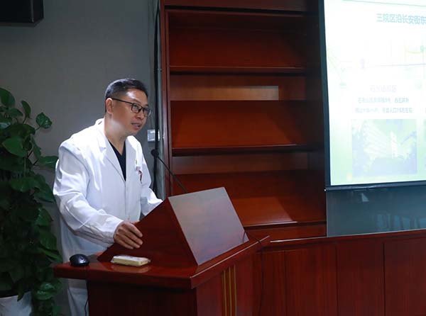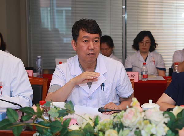 王明刚结合医院在应对群体中毒、鼠疫、新型冠状病毒感染等方面的实践案例,介绍了医院在应对突发公共卫生事件方面的体系建设和主要措施,并按照调研工作的要求提出了下一步工作建议。
