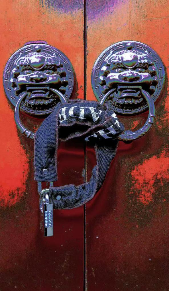 作品简介:这张摄影作品以一扇朱红色的门为中心,门上装饰着传统的中国狮子头门环,象征着守护和威严。门环上挂着一条黑色锁链,金属大锁,象征着廉洁自律的约束力。红色门板与金属门环形成鲜明对比,寓意在权力和诱惑面前,应保持清醒和自律。该作品通过传统与现代元素的结合,传达了廉洁文化的重要性,提醒人们在任何情况下都要坚守廉洁,不被外界诱惑所动摇,保持内心的纯净和正直。