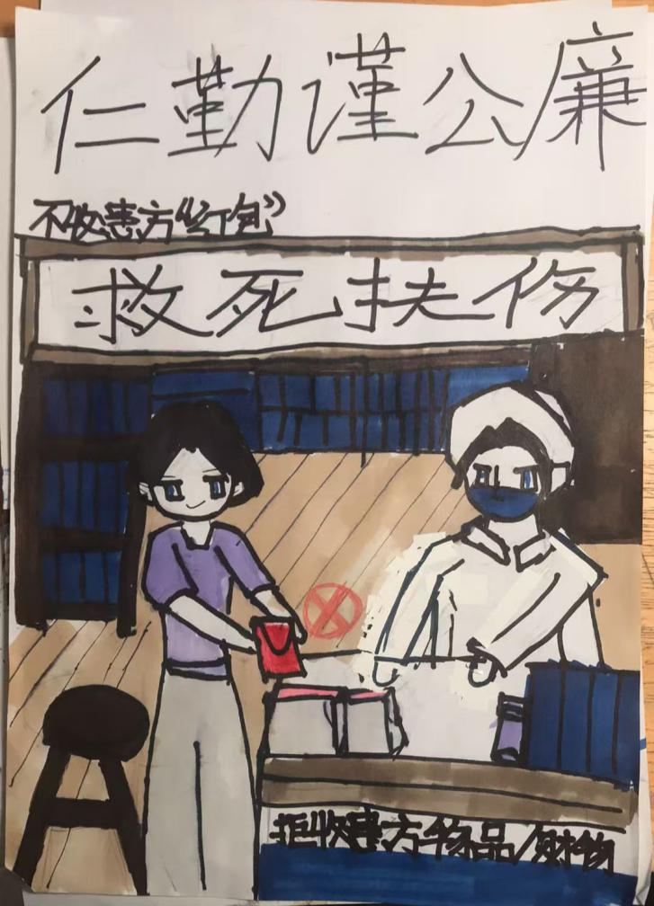 作品简介:这幅作品围绕医患关系和廉洁主题,深刻地反映了当下社会人们对医疗行业廉洁风气的期待。在现实生活中,医患关系有时会因为一些不良现象而变得紧张,但正是有这样坚守廉洁的医护人员,才让患者看到了希望,感受到了温暖。她们用自己的行动诠释着医者的担当,构建起了和谐医患关系的桥梁。这幅作品不仅是对廉洁医护工作者的赞美,更是对整个社会弘扬廉洁之风的呼吁,让人们明白,在医疗领域,廉洁奉公是保障公平、维护医患信任的基石。