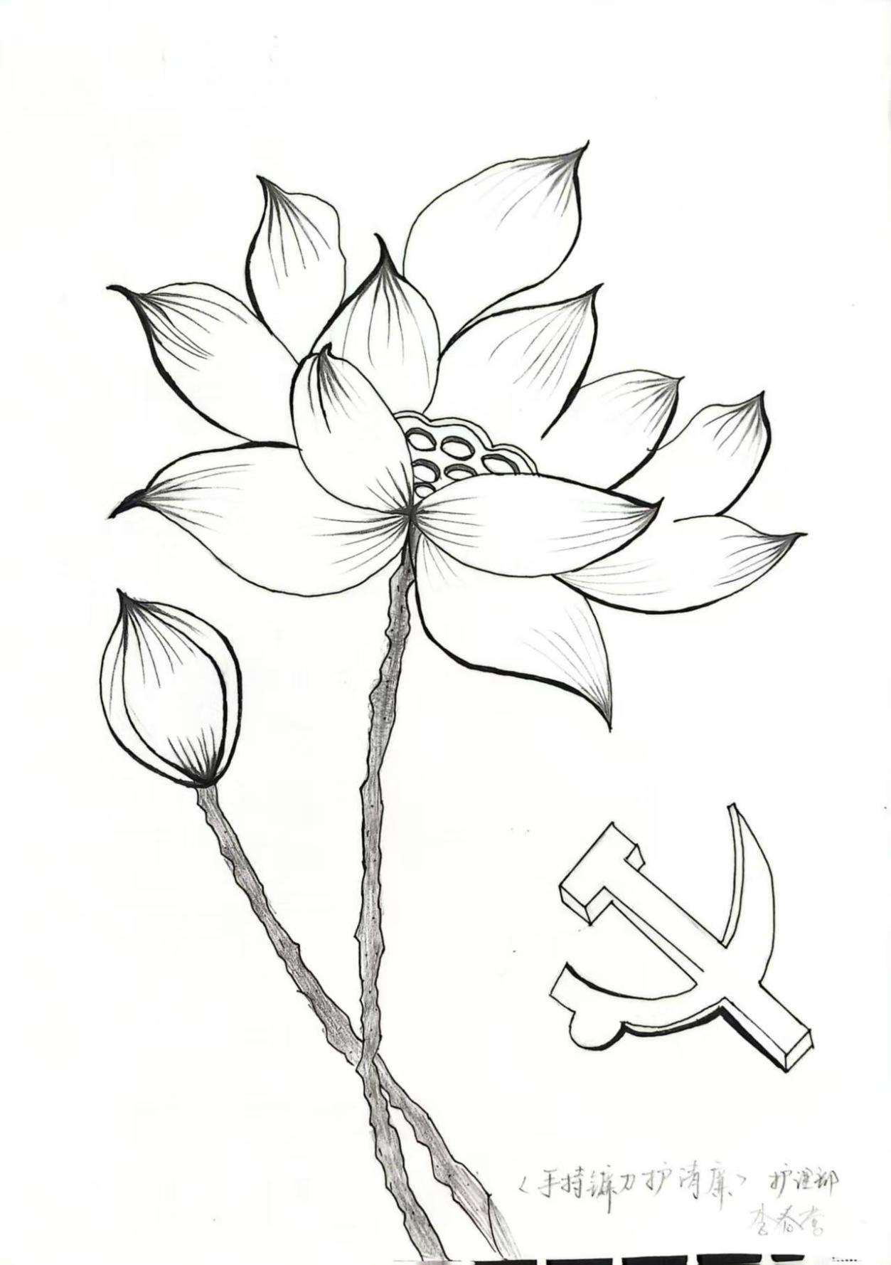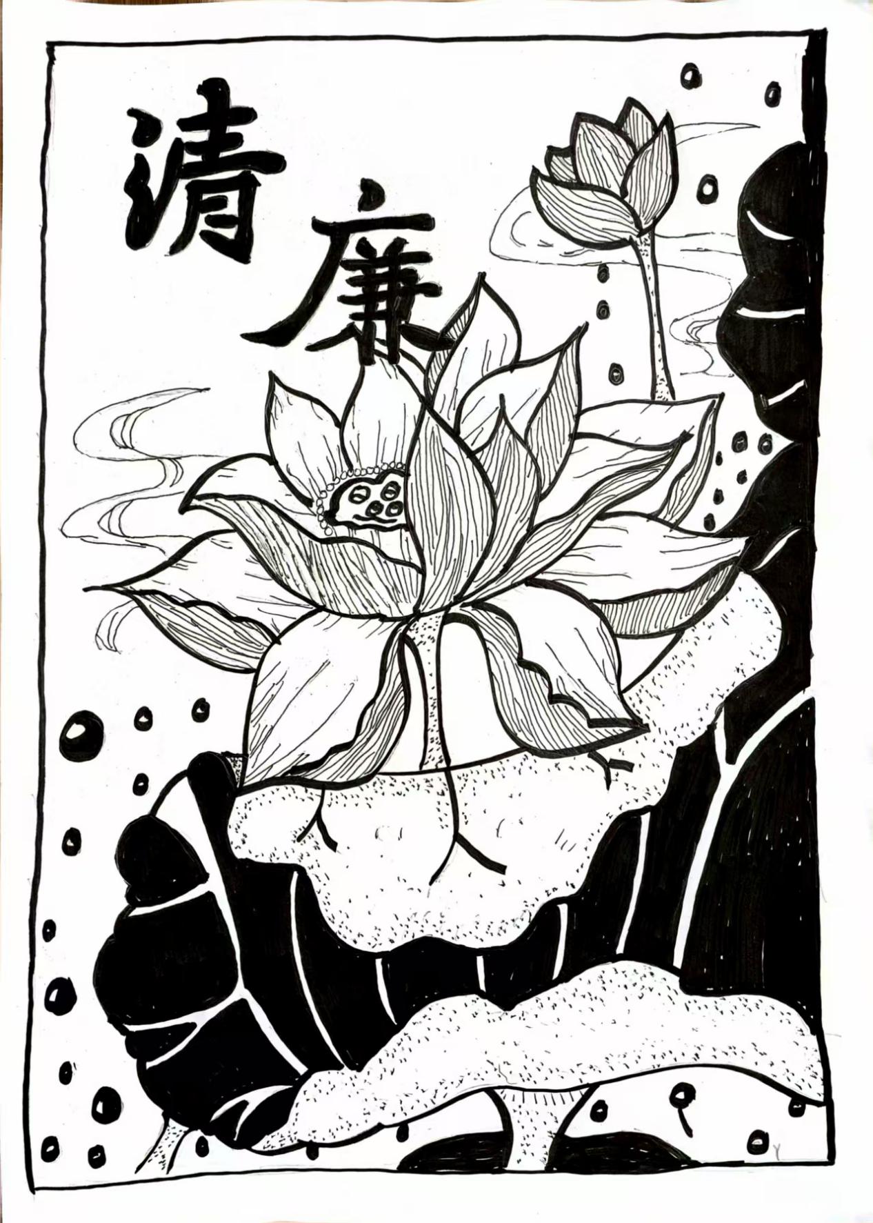 作品简介:以“莲”喻“廉”,提示我们在工作与生活里,要坚守廉洁底线,保持内心纯净,保持正直、清白,拒染贪腐 “淤泥”。