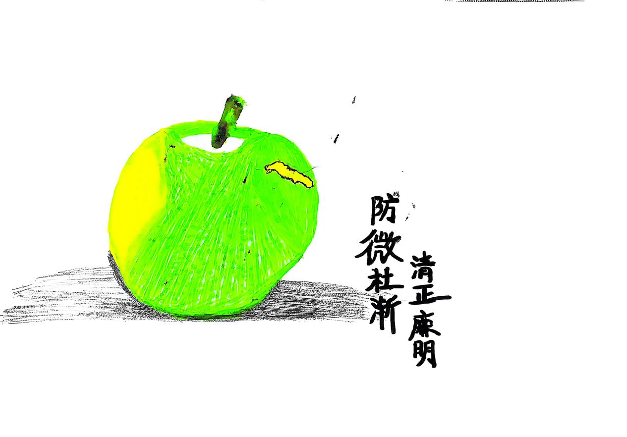 作品简介:苹果通常代表美好,健康的事物;蛀虫则是从内部破坏的害虫。蛀虫往往从苹果内部开始啃食,表面可能暂时看不出大问题,类比于腐败行为具有隐蔽性,也常常在组织、制度或个人的内部滋生,从小贪小占发展到严重违法违纪。所以我们一定要防微杜渐,及时识别和清除腐败滋生的土壤。