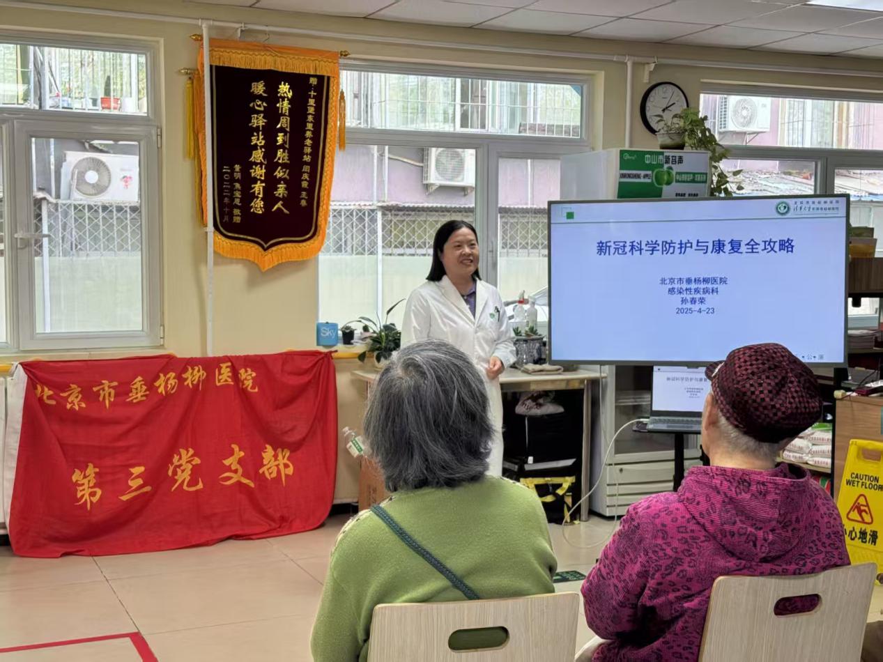 选优配强支委会成员,明确职责分工,加强协作配合,提高第三党支部整体动能,强化战斗堡垒作用。一方面,贯彻落实“以患者为中心”的发展理念,积极组织义诊活动,深入周边社区,为群众提供免费诊疗、健康咨询等医疗服务,2024年7月—2025年6月,开展义诊活动共11次,康养驿站健康讲座1次,支部党员、群众积极参与,服务200余人次,将医疗关怀送到百姓家门口。另一方面,针对感染疾病科就诊患者病情急和人员聚集等情况,第三党支部高度重视提升患者就医体验,增加了就诊提示标识,引导患者有序就医。同时,持续夯实强化预检分诊工作机制,遇到急危重症患者及时开通绿色通道,保证了就诊患者的生命安全,让患者感受到切实的温暖与关怀,以实际行动诠释医者仁心。