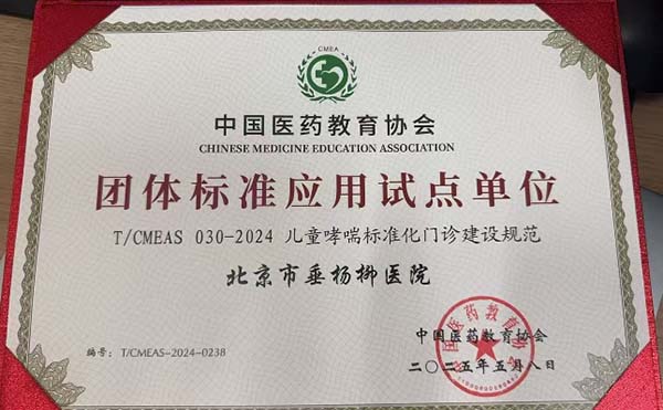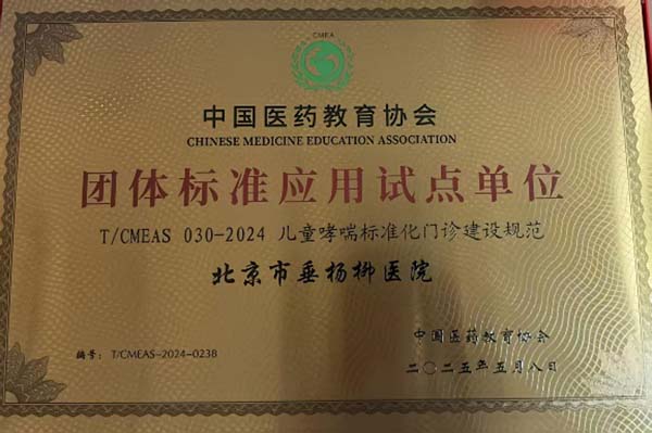 近日,清华大学附属垂杨柳医院儿科过敏哮喘门诊成功入选由中国医药教育协会牵头开展的 “儿童哮喘标准化门诊建设规范团体标准应用试点单位”。这标志着我院在儿童哮喘及过敏性疾病诊疗领域的专业水平和服务能力获得权威认可,也将为提升区域儿童呼吸健康管理水平注入新动力。