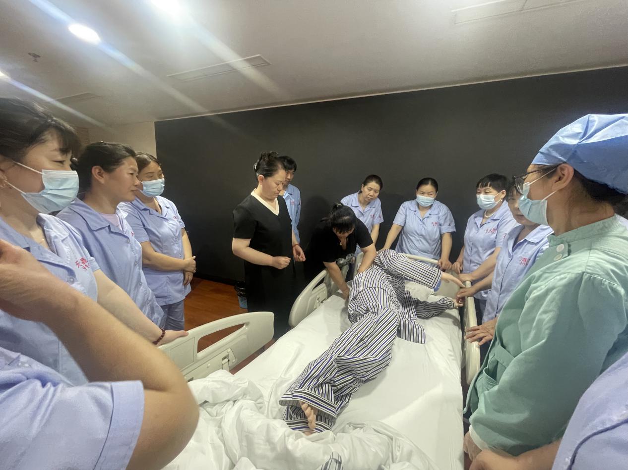 比赛中,选手们动作轻柔精准,在翻身角度、手法力度、与“长者”沟通等细节上,充分考量患者的舒适度和安全性,展现出扎实的技能与爱心耐心。