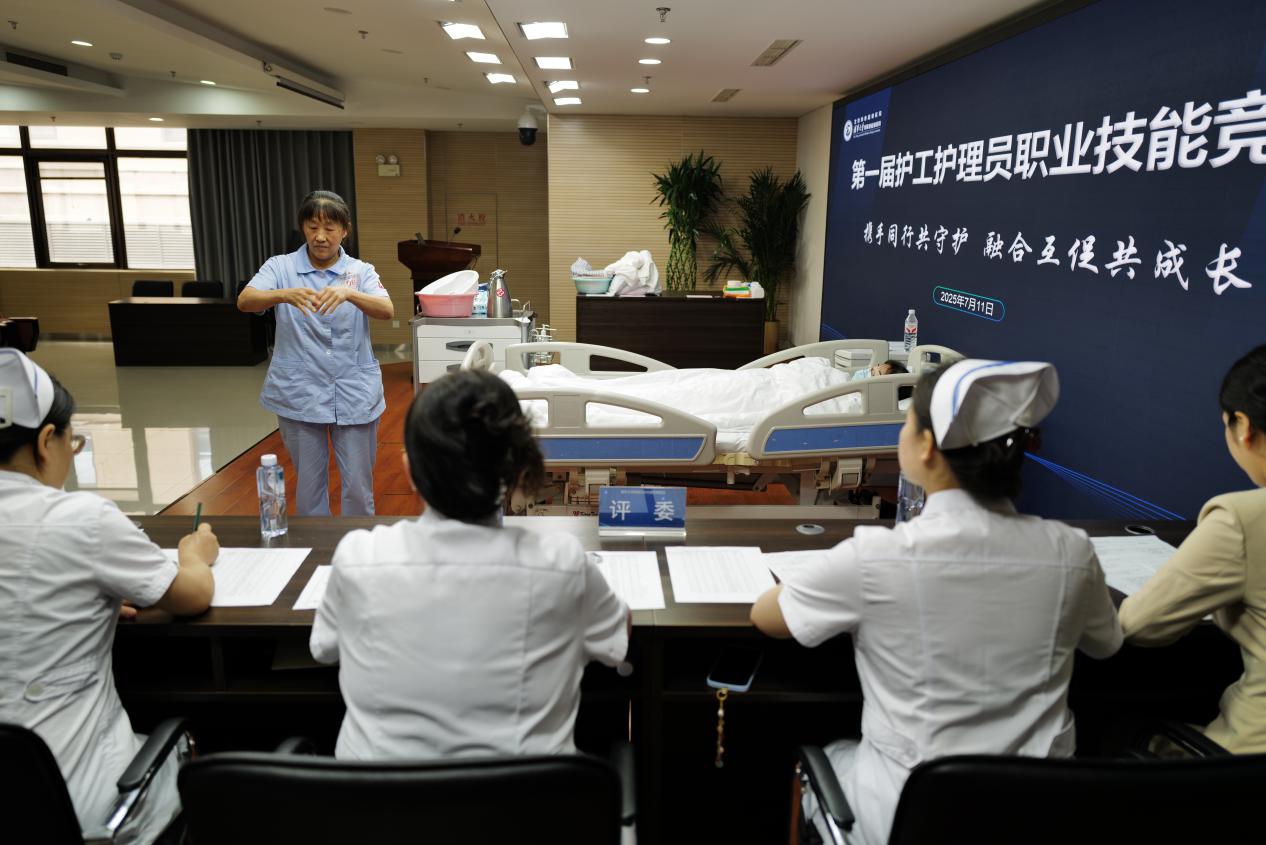2025年7月11日,清华大学附属垂杨柳医院第一届护工护理员职业技能竞赛顺利举办并落幕。此次竞赛以“以赛促学、以赛提技”为核心,为全院护工护理员搭建了技能展示与交流学习的平台,来自各住院病区的20名选手参赛,推动了护理辅助人员队伍专业能力的规范化建设。