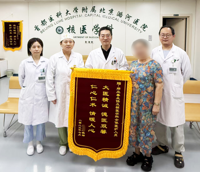 郑立春表示:“锦旗是荣誉,更是责任。核医学科始终注重医疗技术与人文关怀并重,未来将继续优化服务,为更多患者提供安全、精准且具个性化的诊疗服务。”