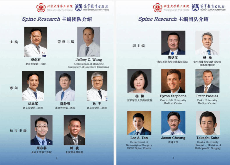依托北京大学第三医院雄厚的临床科研实力、高教社优质的学术出版资源,以及国内外脊柱外科精英组成的编委团队,这本承载着中国脊柱学界厚望的新刊,正扬帆起航,致力于成为引领全球脊柱外科发展的前沿阵地。