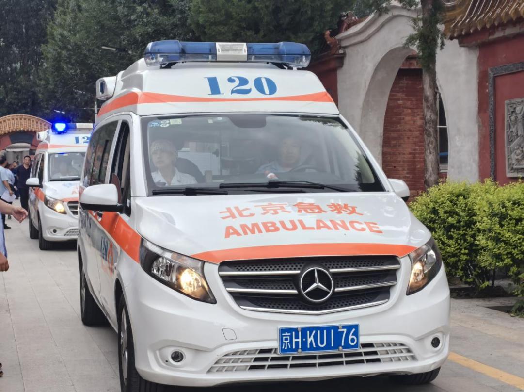 9辆救护车先后驶出,车身上的“120”标识在阳光下格外醒目。这不是寻常的出诊——每辆车的急救箱里,除颤仪、监护仪都已调试至最佳状态,备用药品按优先级整齐排列;每支急救车组时刻保持通讯畅通;临时组建的微信转运沟通群里不停地提醒急救车组注意安全及准确信息填报,细微中无处彰显着对“防患于未然”的极致追求。急救车载着的,是石景山院前急救人“雨未来,备先行”的责任与担当。