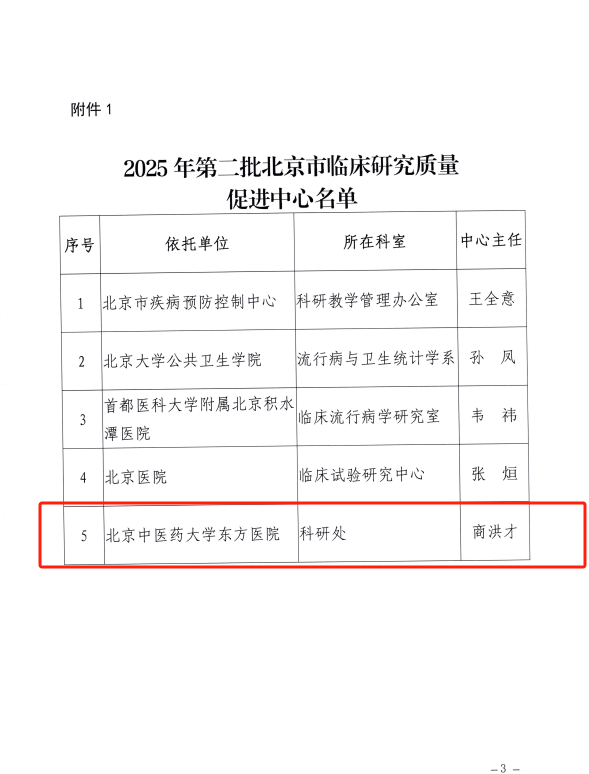 北京中医药大学东方医院再次获批“北京市临床研究质量促进中心”