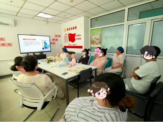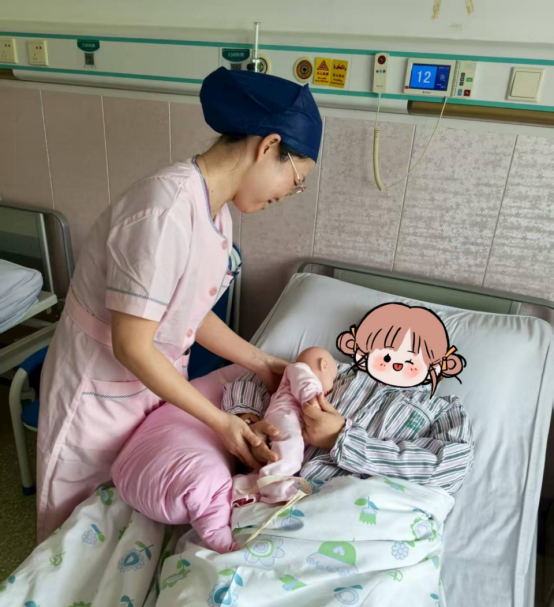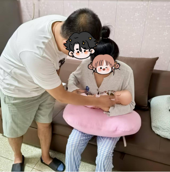 此外,为了知识转化为实操技能,产科护理人员还在8月6日下午深入病房提供“一对一”全员指导,针对乳头凹陷、乳腺堵塞、早产宝宝转院后泌乳维持等实际问题,给予哺乳姿势矫正、冷热敷胀奶缓解、科学挤奶等具体方案,切实解决妈妈们的喂养难题。在此过程中,新手爸爸学得格外认真,他抱着模型,按照助产士的指导协助妈妈调整姿势,虽然一开始有些生疏,但在反复练习后逐渐掌握了要领。新手爸爸笑着说:“以前总觉得喂奶是妈妈的事,通过这次练习才知道,爸爸也可以帮忙,而且正确的姿势对宝宝和妈妈都很重要。并且现在也体会到了爸爸的角色也这么重要!”
