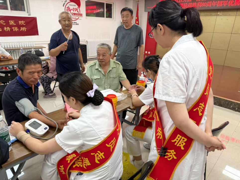 今年是中国人民抗日战争暨世界反法西斯战争胜利80周年,在八一建军节期间,五里坨医院党支部组织数名党员医护骨干,走进石景山区隆恩颐园社区开展拥军优属社区义诊健康活动”,为军人、退役军人、军人家属及居民送去健康关怀。
