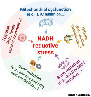 NADH还原应激即细胞内NADH积累导致的还原性负荷过高,是近年来生命科学领域的重要发现之一。长期以来,医学界多关注氧化应激对疾病的影响,忽略了“还原应激”这一新的致病节点。本综述从NADH(一种细胞内重要“电子携带者”)的积累出发,探讨其如何打破细胞“氧化-还原平衡”,诱导糖、脂肪、氨基酸等代谢路径的变化,进而驱动细胞命运的改变。这一机制与多种慢性疾病密切相关,为疾病干预和精准治疗提供了理论支撑和潜在靶点。