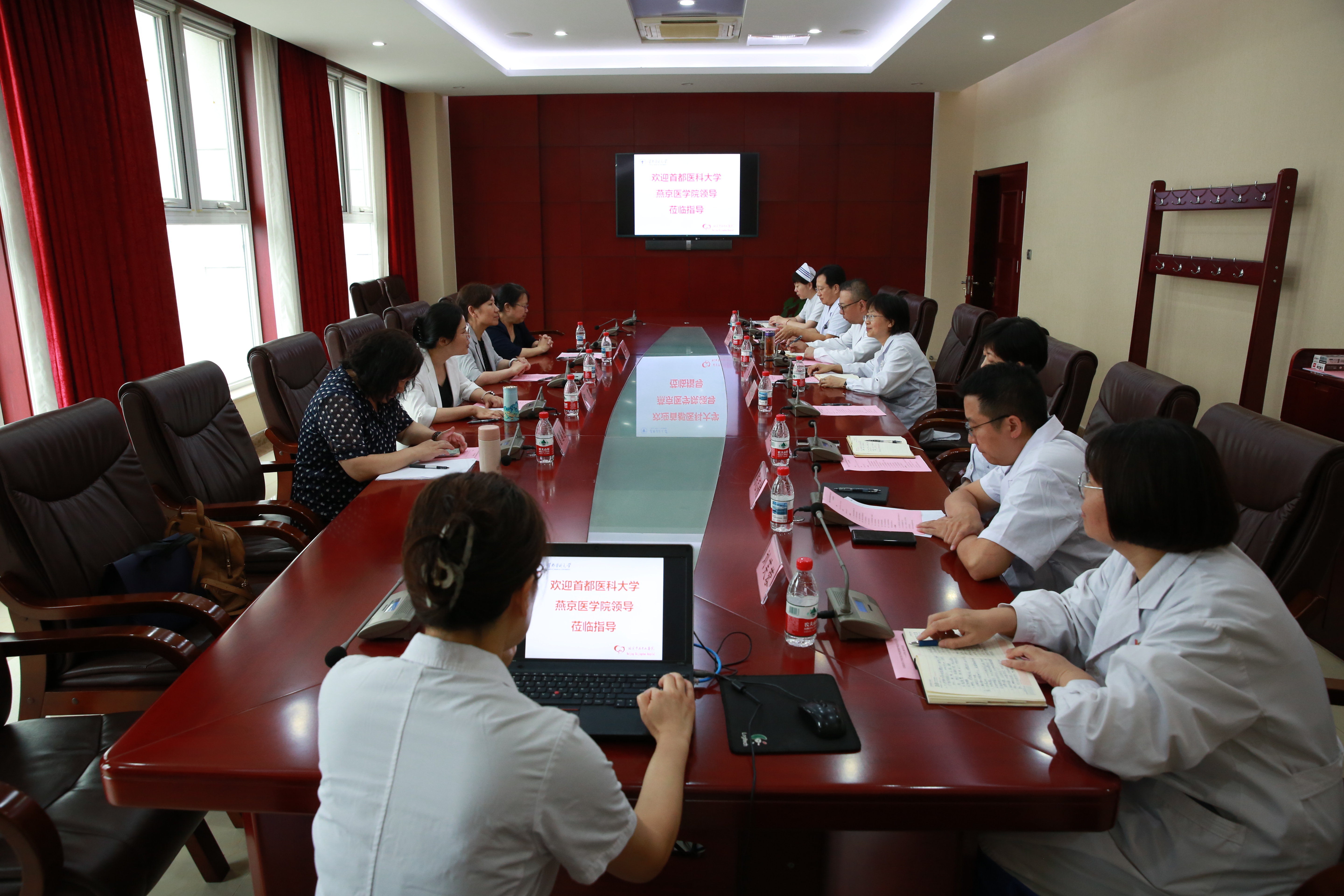 为进一步规范临床教学、提升教学质量,同时了解教学医院现阶段的临床教学情况,8月20日下午,首都医科大学燕京医学院党委副书记、院长杨红、党委副书记赵艳芝、教学副院长鄢雯、教学办副主任曹慧慧一行到首都医科大学附属北京朝阳医院石景山医院进行暑期教学检查。