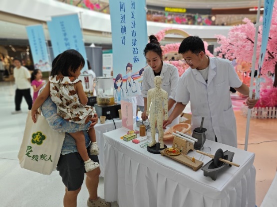 2025年中国医师节活动期间,平谷区中医医院代表区卫健委参加由区残疾人工作委员会主办的残疾预防日活动,于8月22日下午在万达广场呈现了一场集中医药文化与残疾预防于一体的特色市集。