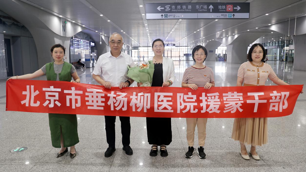 2025年8月22日,清华大学附属垂杨柳医院医院感染控制部科员张立晓圆满结束为期两年多的援蒙任务,从受援地内蒙古自治区乌兰察布市卓资县顺利返回北京。清华大学附属垂杨柳医院副院长崔宏力,医院感染控制部主任武新颖一行,前往车站迎接。