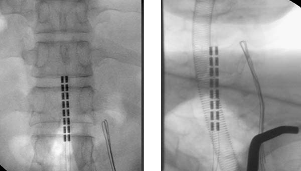 马立新团队经详细检查和评估,决定为这位患者实施“时空序列脊髓电刺激SCS+外骨骼机器人”的创新治疗方案。手术在术中电生理辅助下,精确植入电极于T11-L1/C4-T1节段,术中电生理确定不同电极与右下肢及上肢肌肉对应关系,术后通过编程时空序列脊髓电刺激SCS,结合机器人外骨骼步态训练,实现"刺激激活肌肉-机器人辅助运动"的主动与被动康复联合模式,最大限度恢复运动功能。