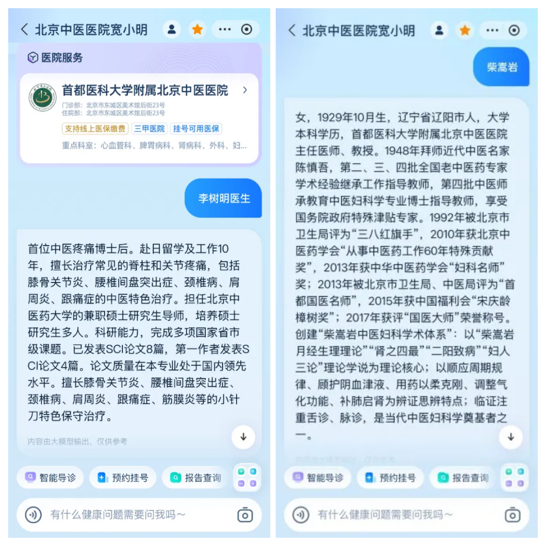 专家介绍:当您需要进一步了解某专家信息,可以直接在“宽小明”对话界面输入该专家的姓名,即可得到最准确的医生信息,让您在就诊前深入了解专家擅长的疾病和治疗方法。