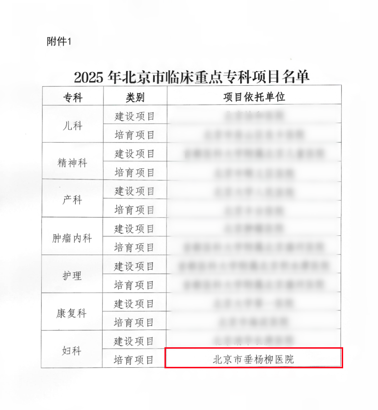 喜报!北京市垂杨柳医院妇科成功获批北京市临床重点专科培育项目