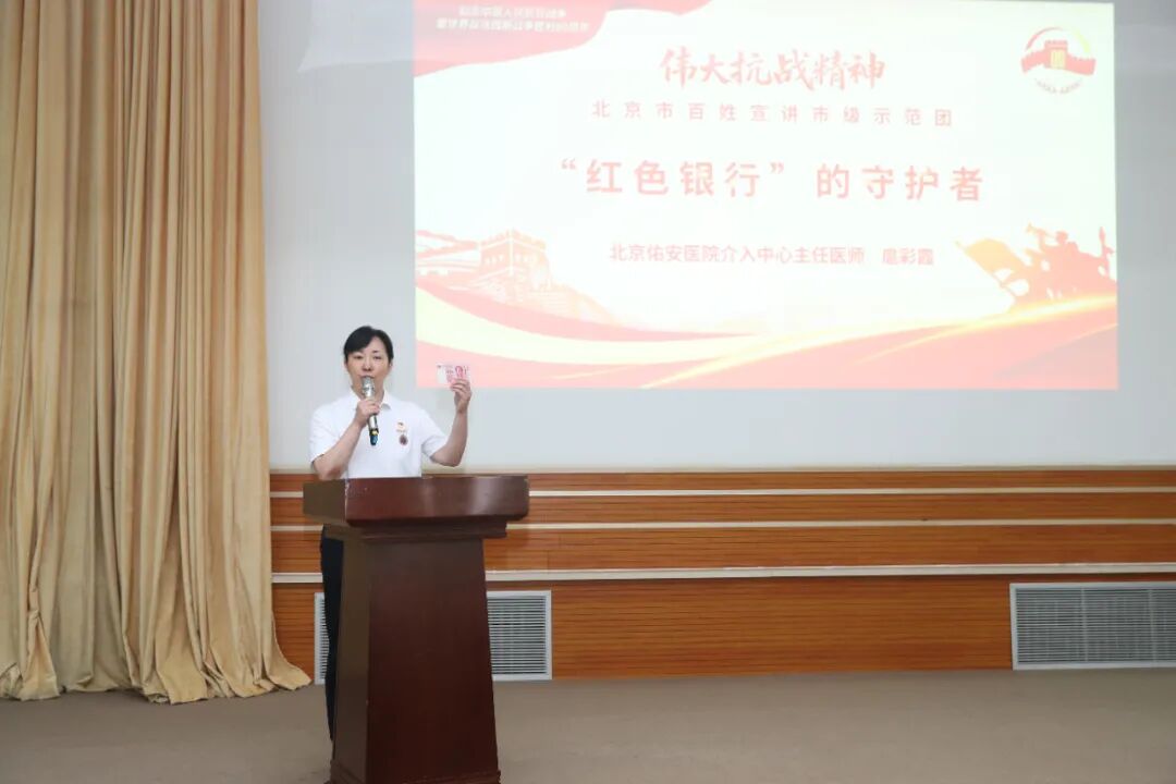 连日来,北京佑安医院肝病与肿瘤介入治疗中心扈彩霞主任医师作为北京市“伟大抗战精神”百姓宣讲团的一名成员,先后到海淀区苏家坨镇、密云区、首钢集团、丰台西罗园社区等多个基层单位,完成了一场又一场感人至深、催人奋进的宣讲。