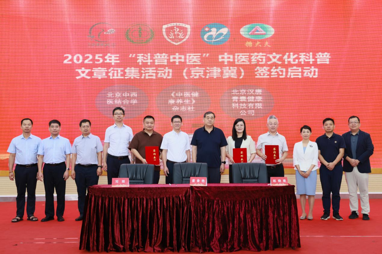专业委员会成立后,“科普中医”中医药文化科普文章征集活动(京津冀)正式启动。会议指出,中医药作为中华文明瑰宝,需广泛凝聚社会力量实现有效传播。现场,《中医健康养生》杂志社(代表董鲁艳)、北京中西医结合学会(代表刘刚)与北京汉唐青囊健康科技有限公司(代表赵晓建)共同签约,三方将充分融合媒体传播、学术权威与技术创新,携手开拓中医药文化科普新路径,谱写中医药文化传播新篇章。
