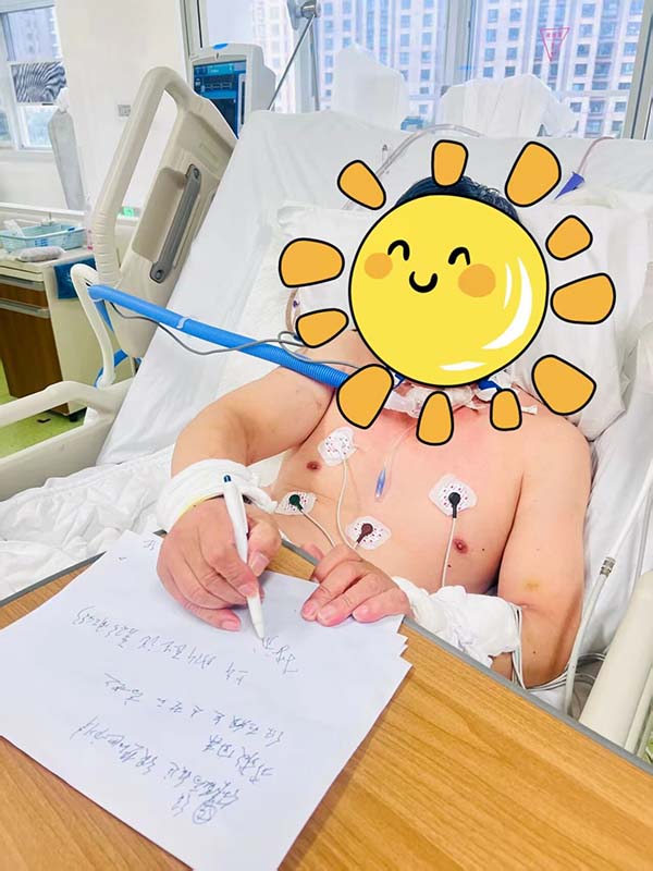 数日后,奇迹出现了,患者逐渐能睁开眼睛,慢慢也有了遵嘱动作,意识终于恢复了!随之,患者进入到新的康复治疗阶段,大家愈加尽心竭力。患者每一次细微的病情变化,都会引发团队每位成员的迅速讨论与决策;同样,每一项精准的治疗措施,都离不开护理团队24小时不间断的严密监护与精心落实。依据患者病情变化,护理团队辅以呼吸康复、肢体功能康复等手段,采取渐进式康复锻炼策略,从腹式呼吸法开始练起,直到患者床旁能够坐起,最后帮助其顺利脱离呼吸机,加速身体康复。