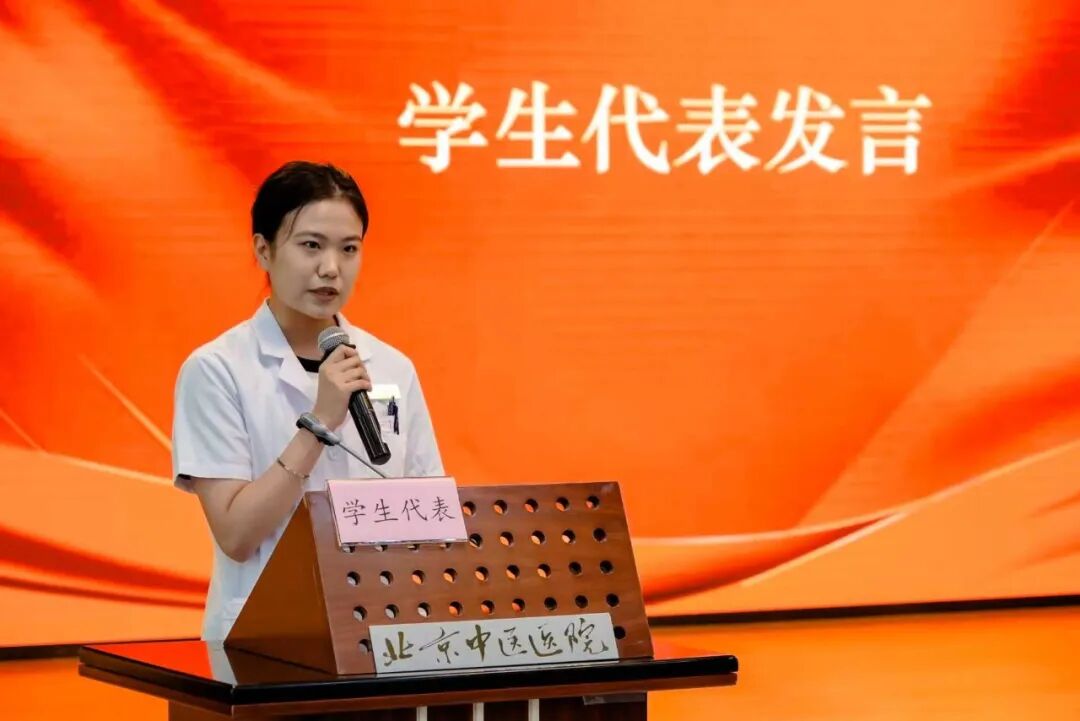 学生代表、2023级针灸推拿专业规培医师王握瑜表达了对医院的深切感恩,她回顾了带教老师手把手传授问诊技巧、以仁心诠释医德的点滴,老师们不仅是医术导师,更是职业引路人。她承诺将荣誉化为动力,争做有温度、有技术、有担当的好医生,为健康事业发光发热。
