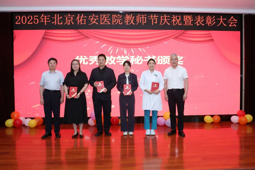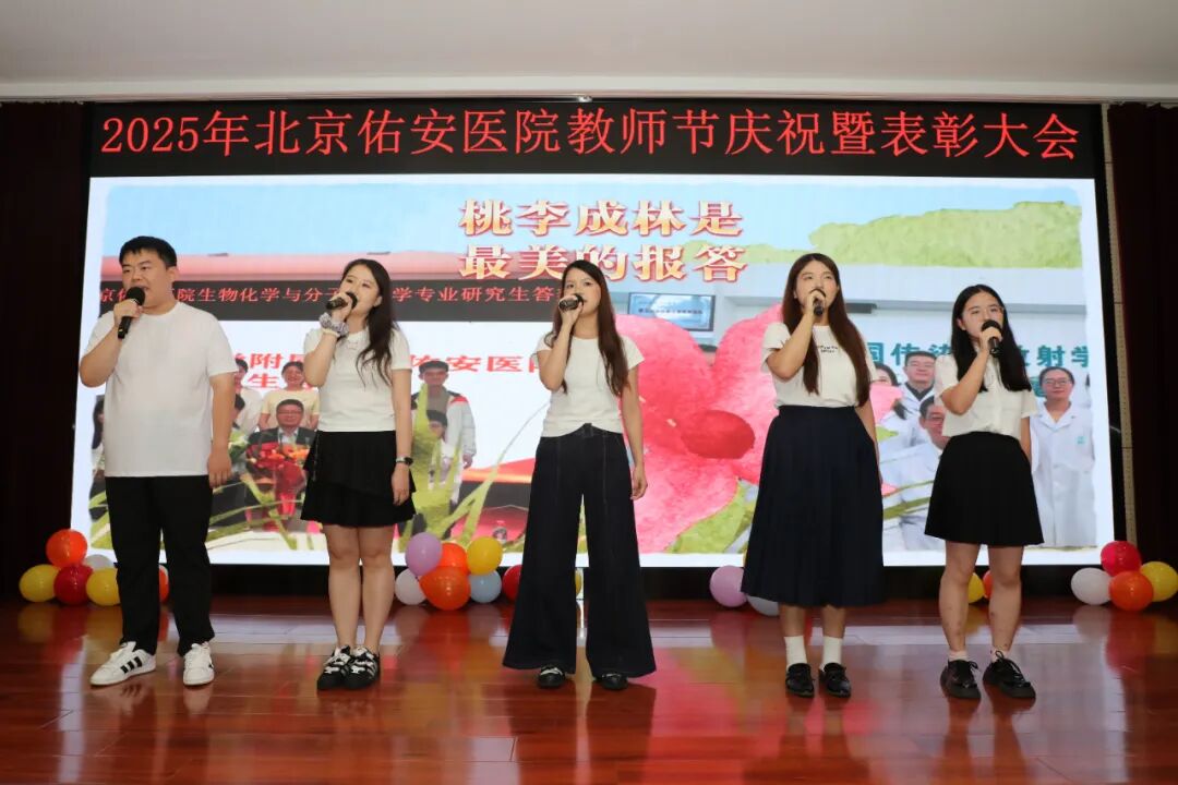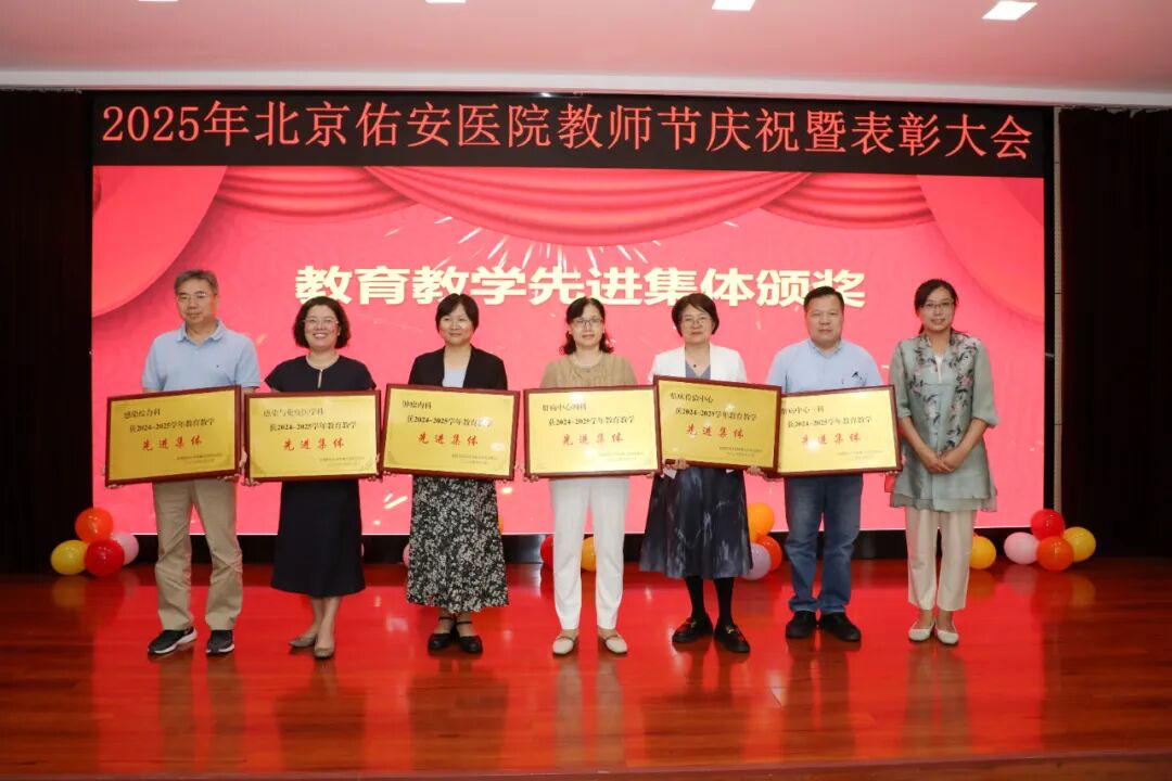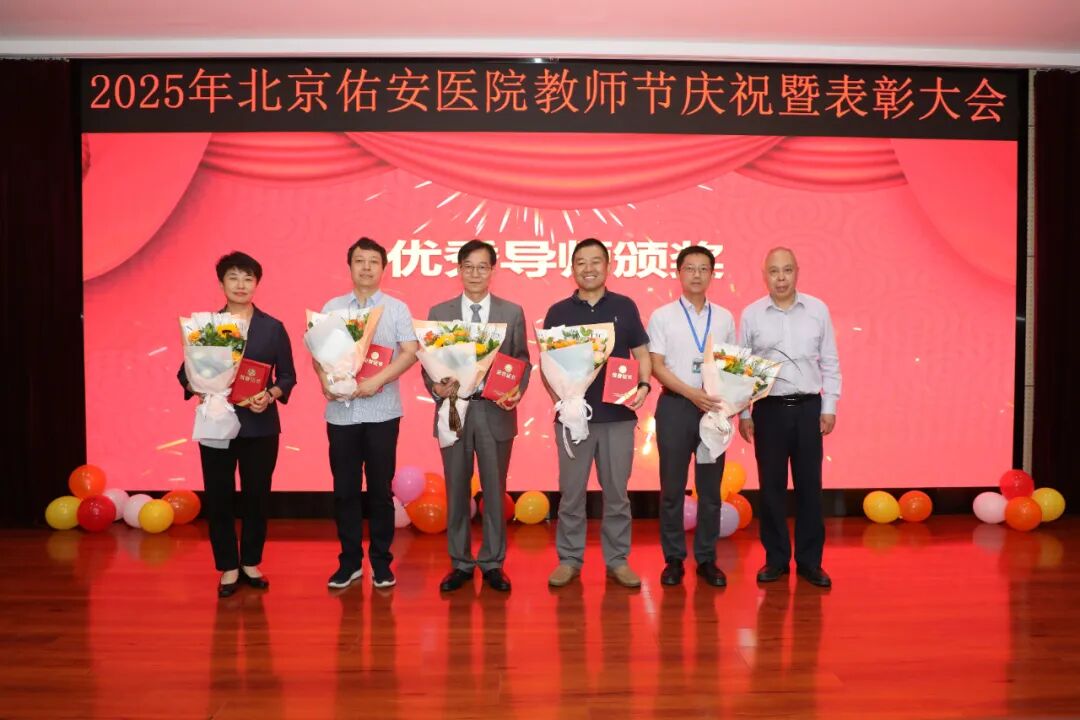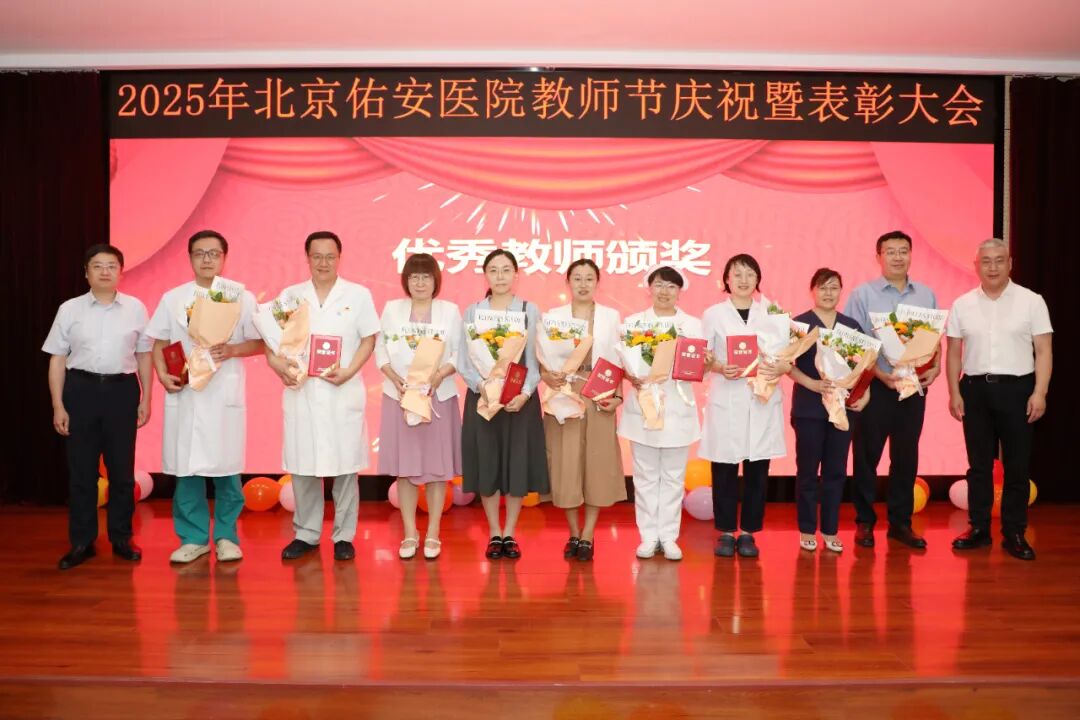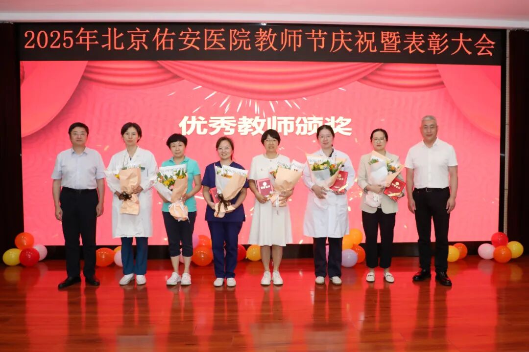金风送爽,桂香沁人。在这充满感恩与敬意的美好时节,我们迎来了第41个教师节。2025年9月10日下午13:30,北京佑安医院报告厅内气氛热烈,2025年教师节庆祝大会暨教育教学表彰大会在此隆重举行。本次大会以 “大力弘扬教育家精神,加快建设教育强国” 为主题,党委副书记、院长马迎民,党委副书记、纪委书记王建敏,党委委员、副院长胡中杰,党委委员、副院长张永宏,副院长栗光明,党委委员、总会计师张春妮受邀出席。全体教师欢聚一堂,共庆属于自己的节日,大会由2024级博士研究生徐鹏、蔚家琪共同主持。