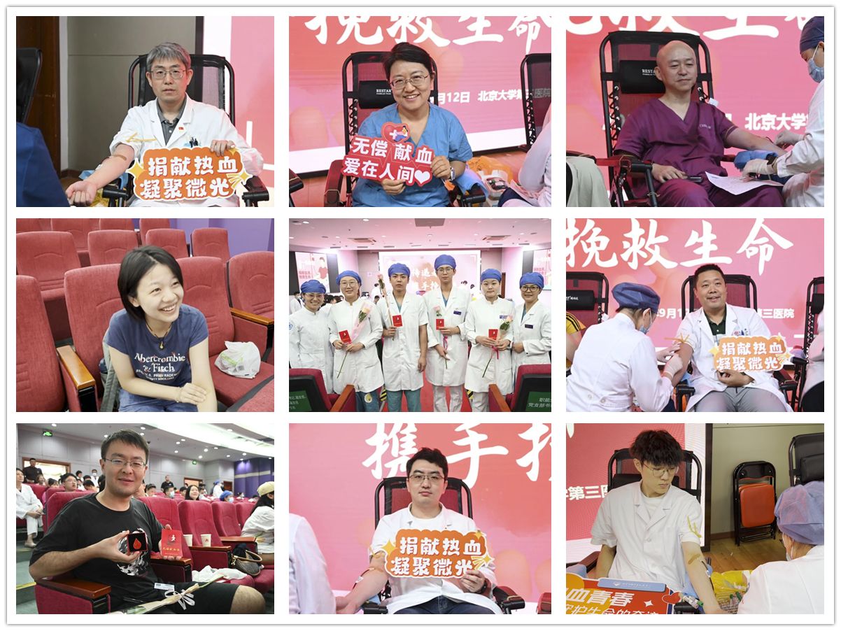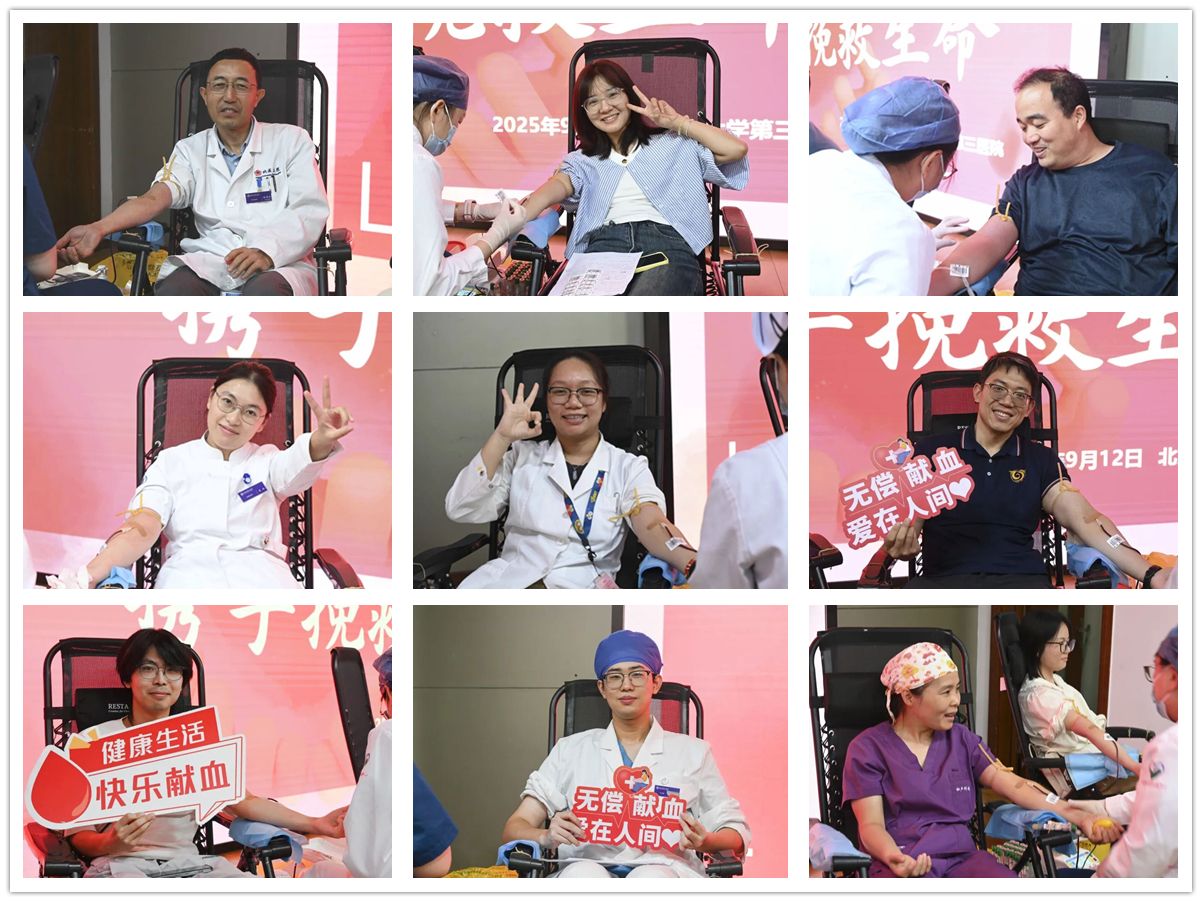 滴滴热血,传递着奉献的赤诚;脉脉温情,守护着生命的期盼。2025年9月12日上午,北京大学第三医院172名医务人员无偿献血37200毫升。此次献血活动得到了全院各科室、院区医务人员的积极响应,大家纷纷踊跃报名,以实际行动守护生命,用滴滴热血生动诠释了“医者仁心”的深刻内涵。