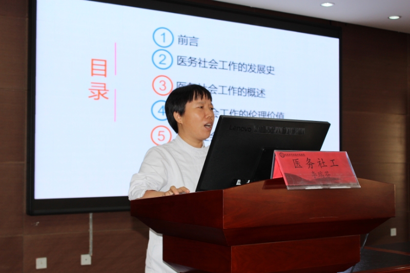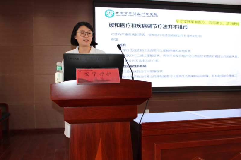 李瑞芬护士以“温情守护—医务社工介入安宁疗护”为题进行分享。她从医务社会工作的发展史、医务社会工作的伦理价值、医务社会工作理论运用、平谷中医院医务社工工作开展情况等方面进行介绍,让我们对医务社工有了更加深入地了解,也对医务社工介入安宁疗护工作的内容和模式有了更进一步地认识。