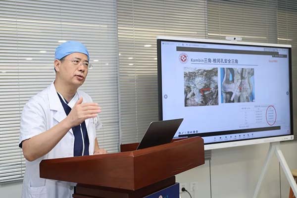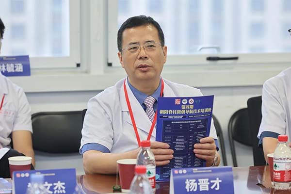 骨科副主任杨晋才主持本次培训班,向来自各地的骨科同道表示热烈欢迎,他介绍,培训班通过 “理论授课+手术演示+深度讨论” 的形式,助力学员深入掌握脊柱微创导航技术的精髓,期待各位专家在学习交流中收获知识、增进友谊,共同推动学科高质量发展。