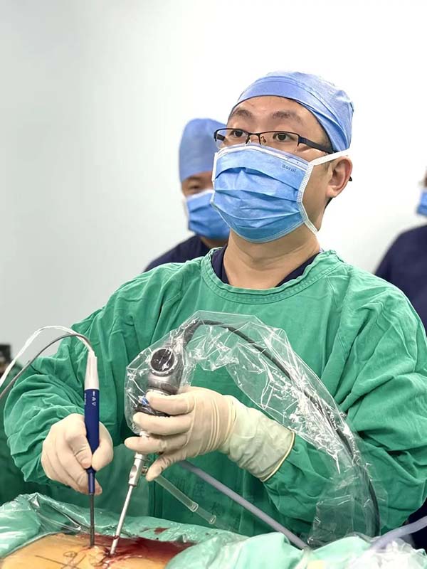 副主任医师潘爱星演示导航辅助UBE-L4/5椎间盘突出髓核摘除术