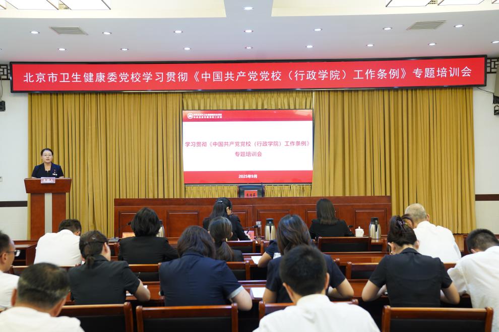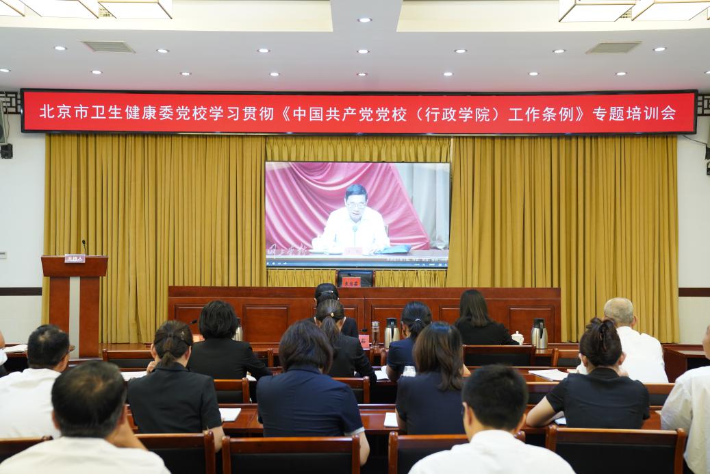 9月19日,北京市卫生健康委党校组织召开学习贯彻《中国共产党党校(行政学院)工作条例》(以下简称《条例》)专题培训会,校委班子成员、全校教职工参加学习,会议由办公室(党办)主任许馨元同志主持。