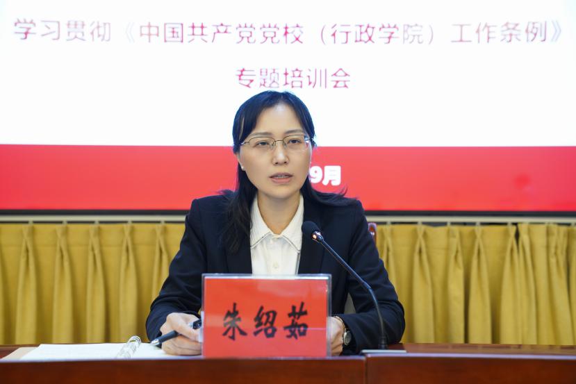 最后,分管日常工作的副校长朱绍茹同志代表校务委员会,对我校学习宣贯《条例》作了布置动员。她强调,学习宣传贯彻新修订的《条例》是当前党校工作中的一项重要政治任务,一要提高政治站位,深刻认识《条例》的重大意义,切实增强学习贯彻的自觉性和坚定性。二是聚焦主责主业,准确把握条例的核心要义,全面提升办学治校的质量和水平。三是强化责任担当,狠抓《条例》的贯彻落实,奋力开创我校工作的新局面。