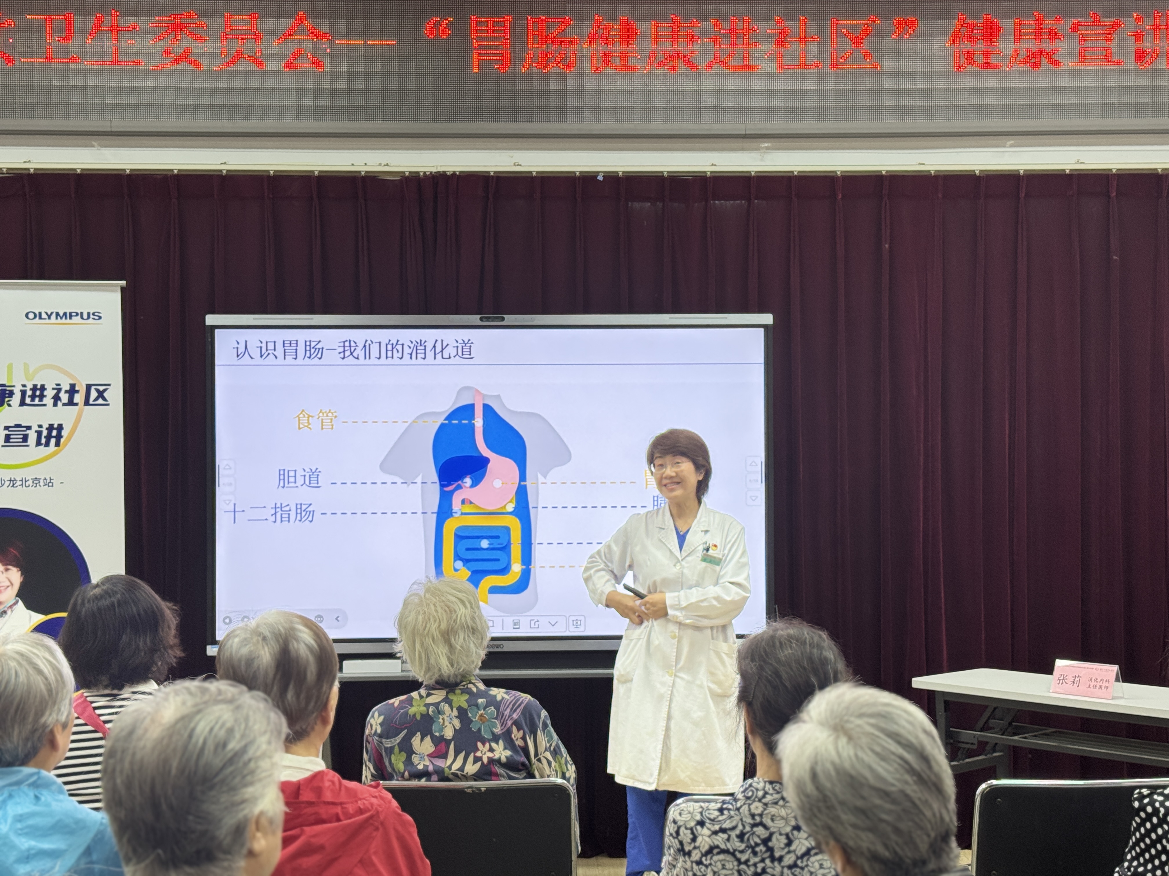 为深入践行“健康中国2030”规划纲要中“预防为主”的核心指导思想,积极推动“早筛查、早诊断、早治疗”的三早防癌理念深入人心,9月19日,由北京医学会发起、首都医科大学附属北京朝阳医院石景山医院承办的“胃肠健康进社区”健康宣讲活动在石景山区远洋山水南区居委会顺利举行。此次活动是我院自2023年以来第三次开展同类健康促进活动,持续将优质医疗资源和服务送至百姓身边。